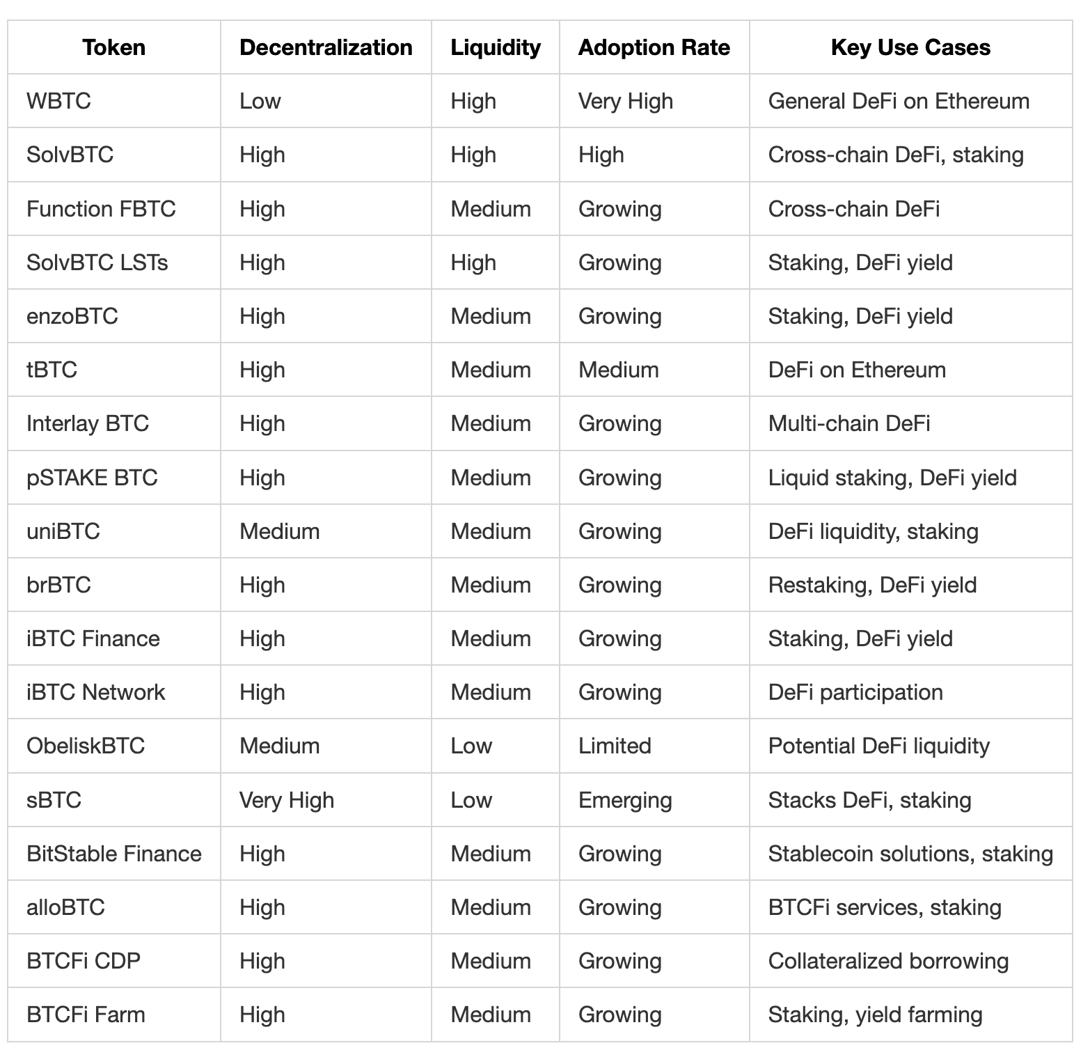 For investors and users, several factors determine the relative attractiveness of different tokenized Bitcoin solutions: